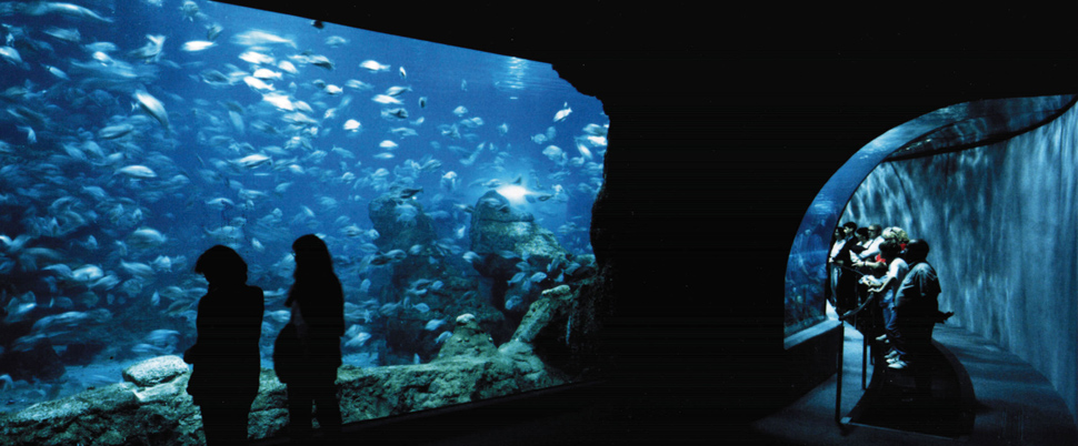 La idea fundamental, fue la de poder observar los animales como si el espectador estuviese en el fondo del mar, de abajo hacia arriba, y esto constituyó uno de los principales atractivos de este Oceanarium.