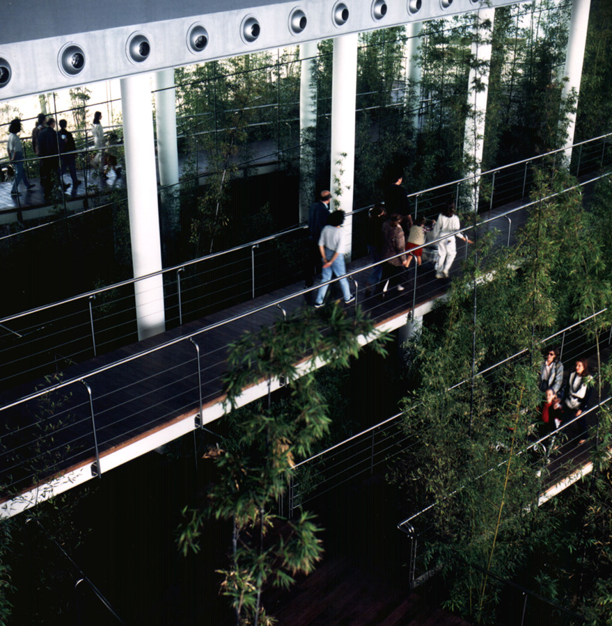 La pieza fundamental es el gran depósito de agua de mar, el “oceanarium”, en el que pueden vivir especies de gran tamaño; su diámetro es de 40 metros y el público participa del espectáculo del fondo del mar caminando por dos túneles totalmente vidriados con una longitud total de 105 metros; uno de ellos recorre la mitad de la periferia del “oceanario”; el otro túnel lo atraviesa.