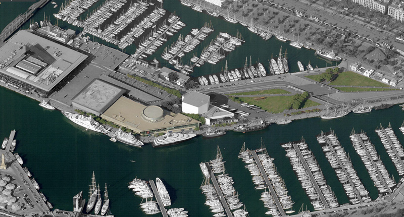 El edificio está ubicado en la esquina del muelle de España, frente a la fachada portuaria de la Barceloneta y al monumento de la torre del Reloj del antiguo muelle de pescadores.